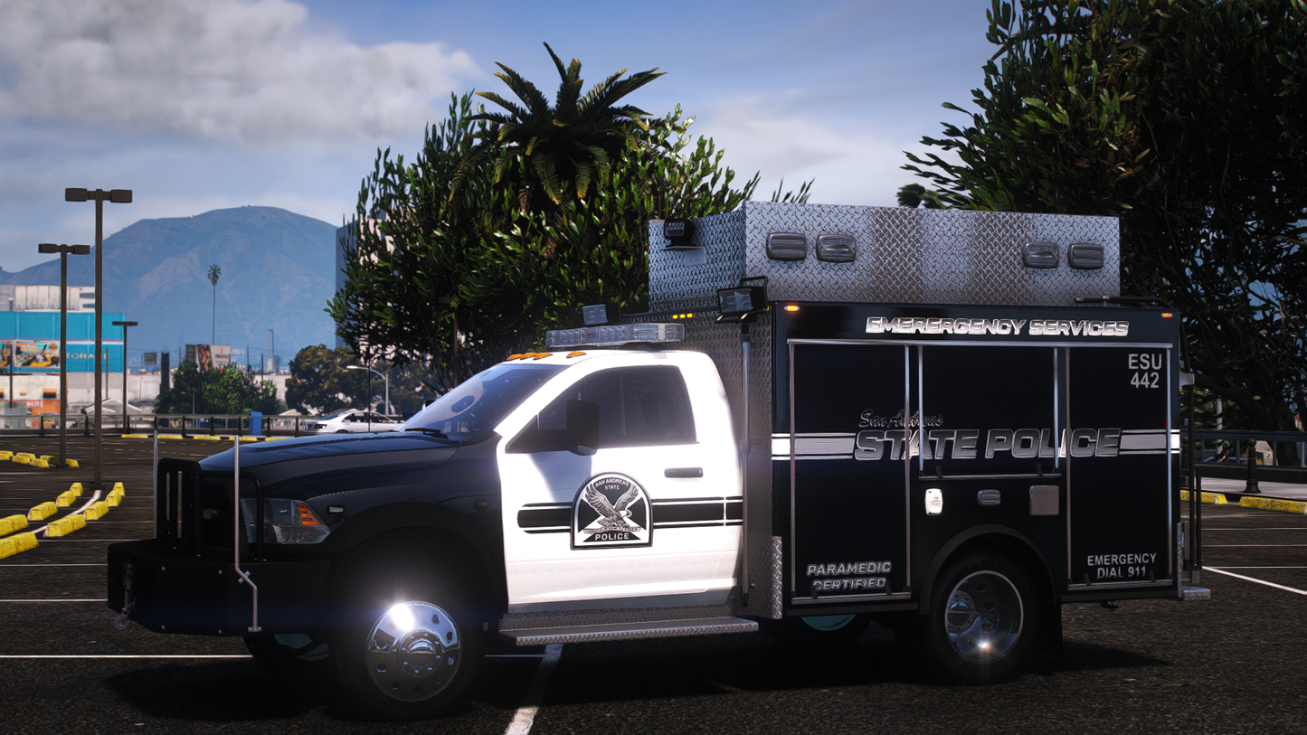 Bomb Squad and Emergency Services, something most don't think about but this specialized team is great to have when you need it. These trucks are ready to respond all over the state with state-of-the-art equipment and functionality, such as interior equipment and organization, a big bumper to ram anything out of the way, ladders to climb any building small or large, and much more! These are perfect for any department that needs to make sure their officers get home safe.